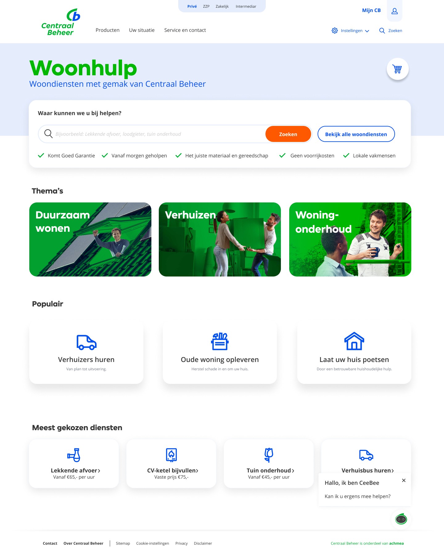 Binnen Centraal Beheer bestonden meerdere woondiensten naast elkaar. Klushulp, Duurzaam Woongemak, onderhoudsdiensten — elk met een eigen insteek, eigen pagina’s en eigen funnels.