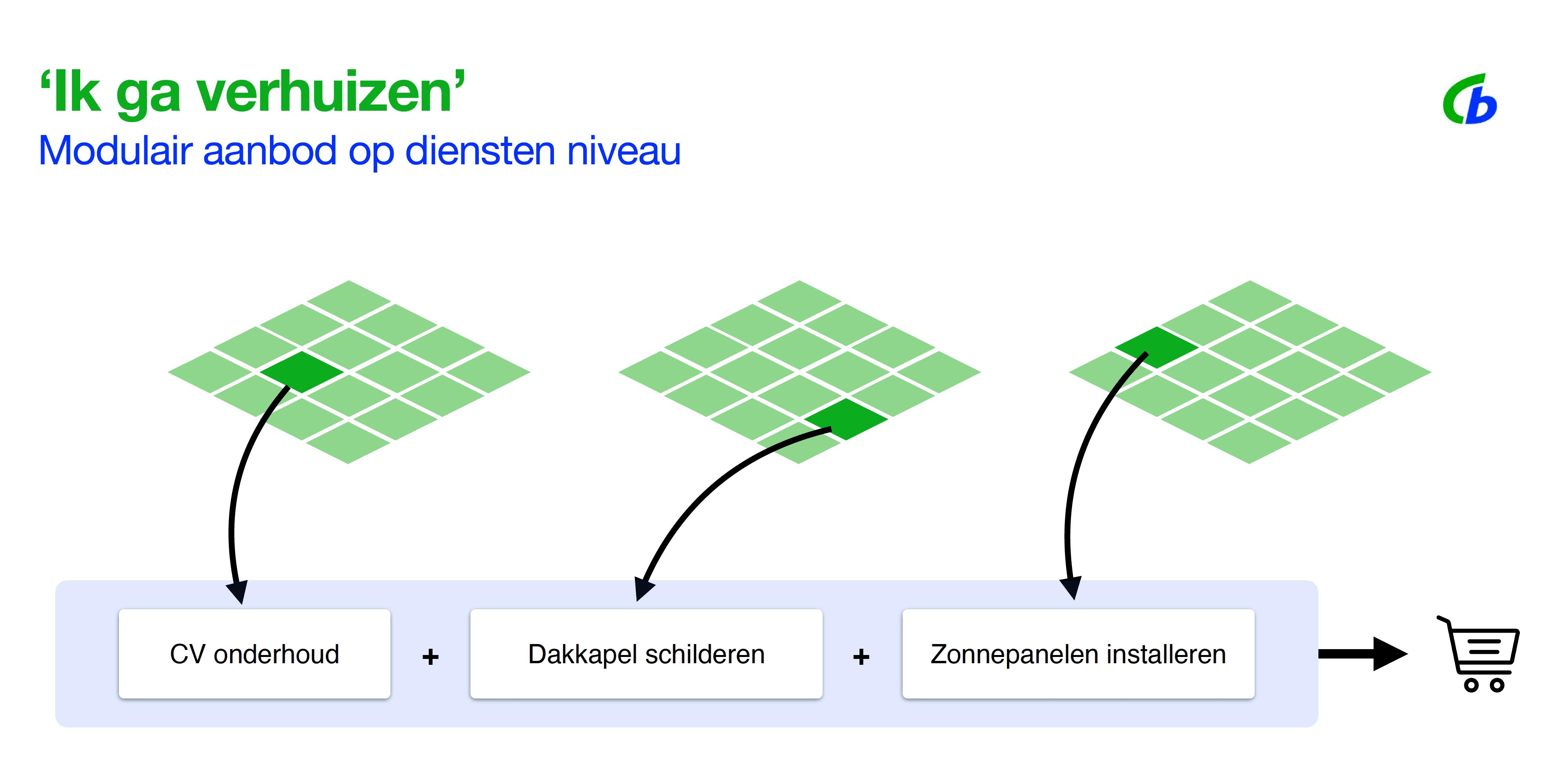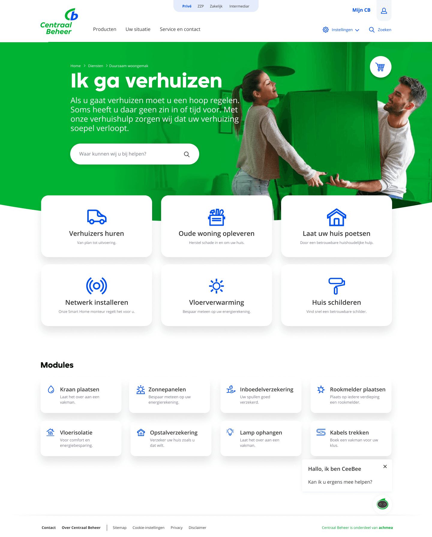Bijvoorbeeld binnen het thema “Ik ga verhuizen” konden meerdere diensten logisch gecombineerd worden: opruimen, schilderen, isoleren.